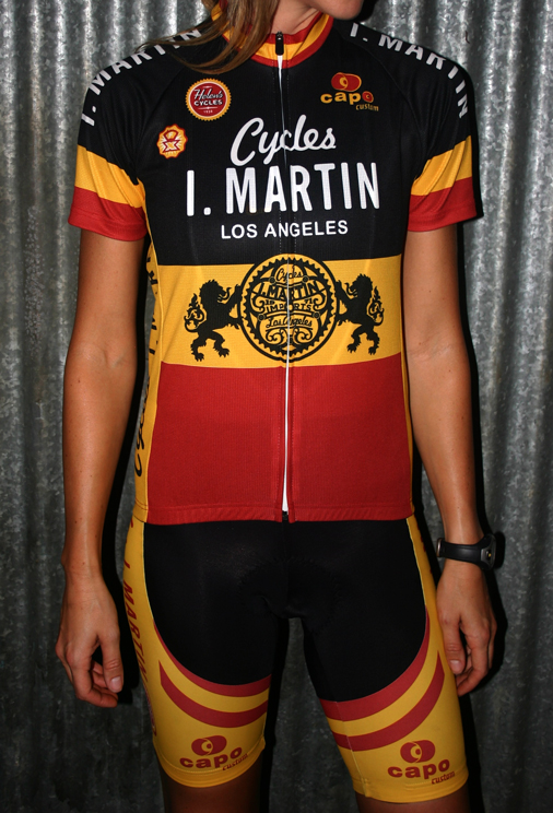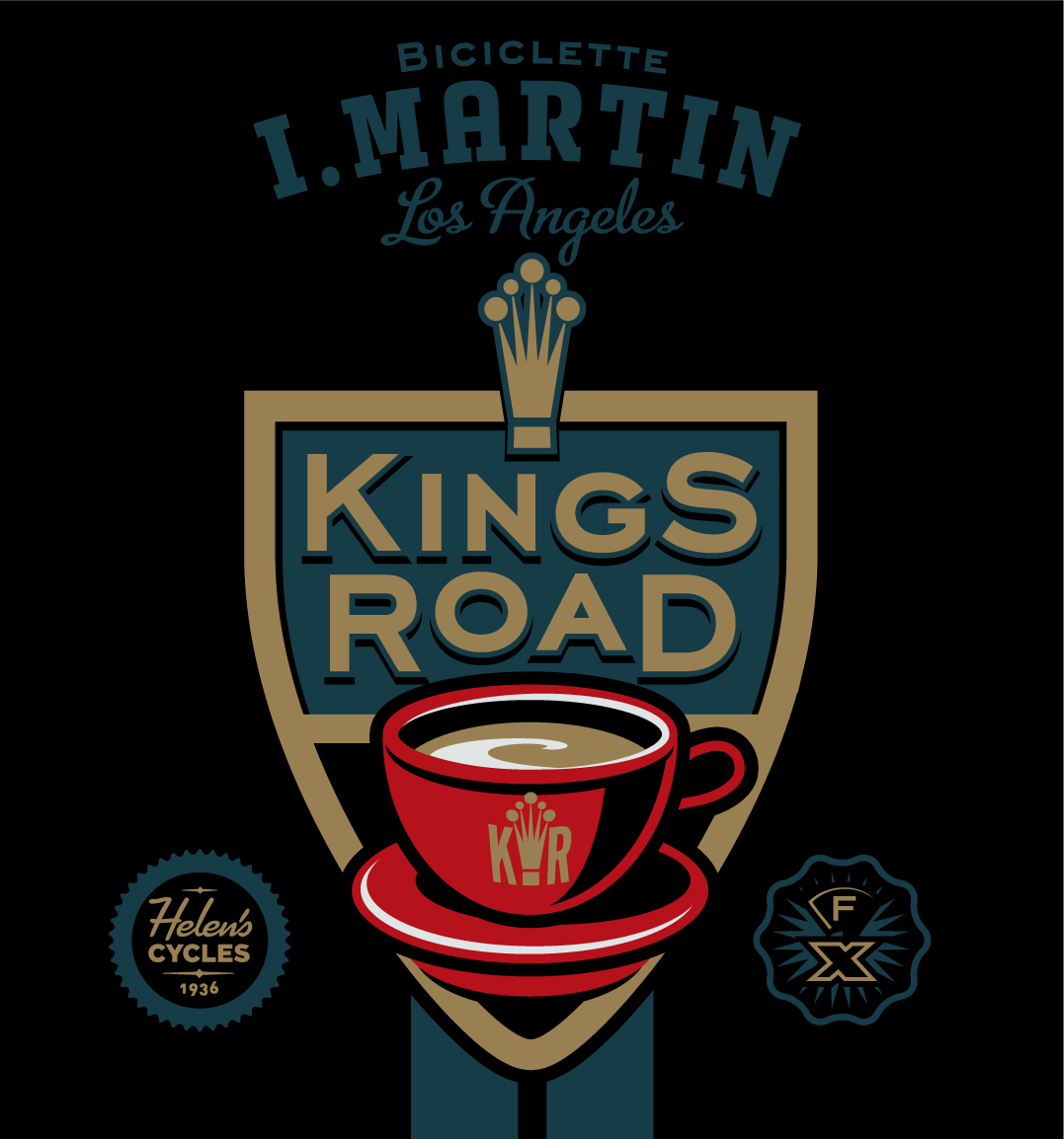 Closeup of bicycle jersey collab between I.Martin Bicycles and my Alternate Rebrand treatment for Kings Road Cafe